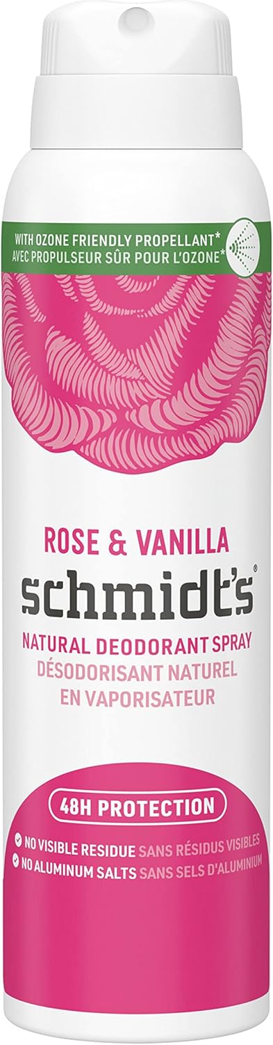 Schmidt's Deodorant Natural Deodorant Spray for women and men, Rose & Vanilla