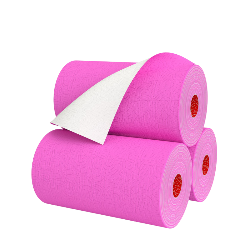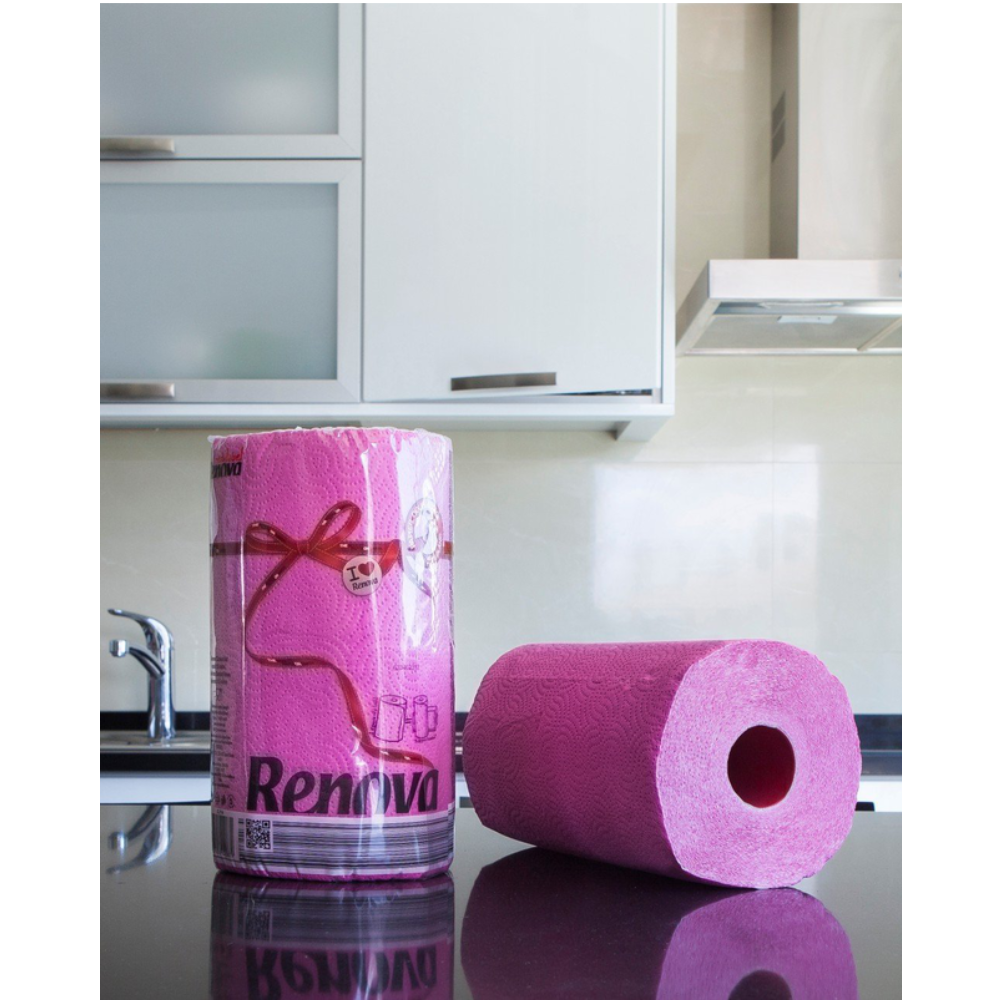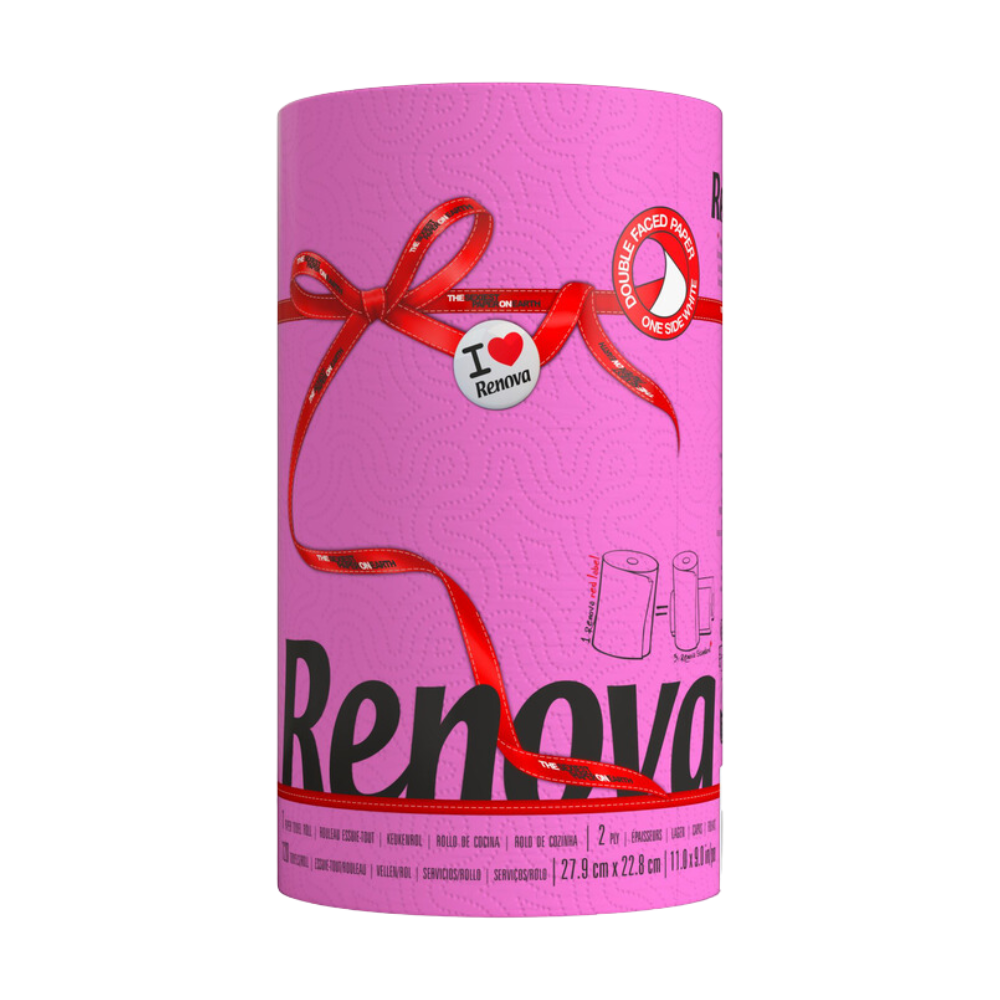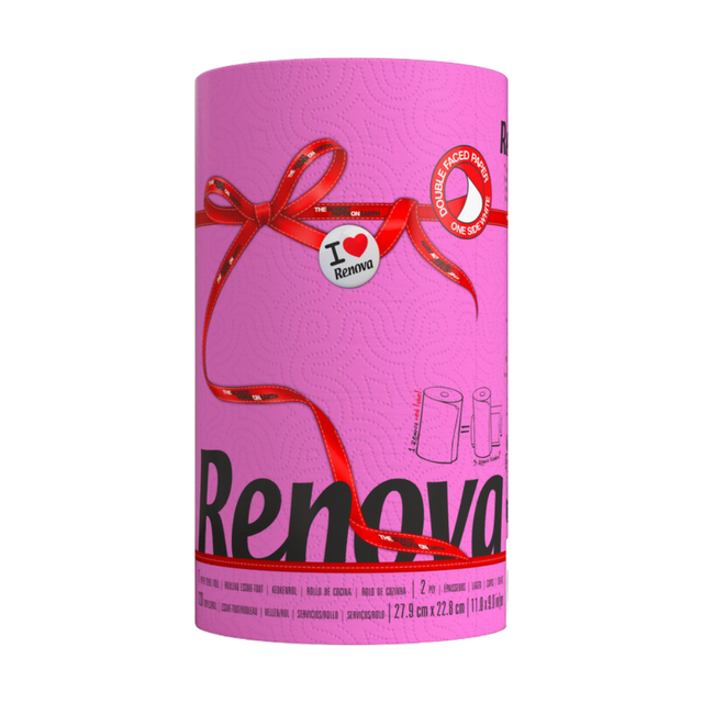 Size Matters! For extended durability, these rolls are taller and wider, with three times more towels than Renova’s standard rolls. The absorbent double faced paper has an inner side white, blended with a palette of luminous colours on the outside layer.