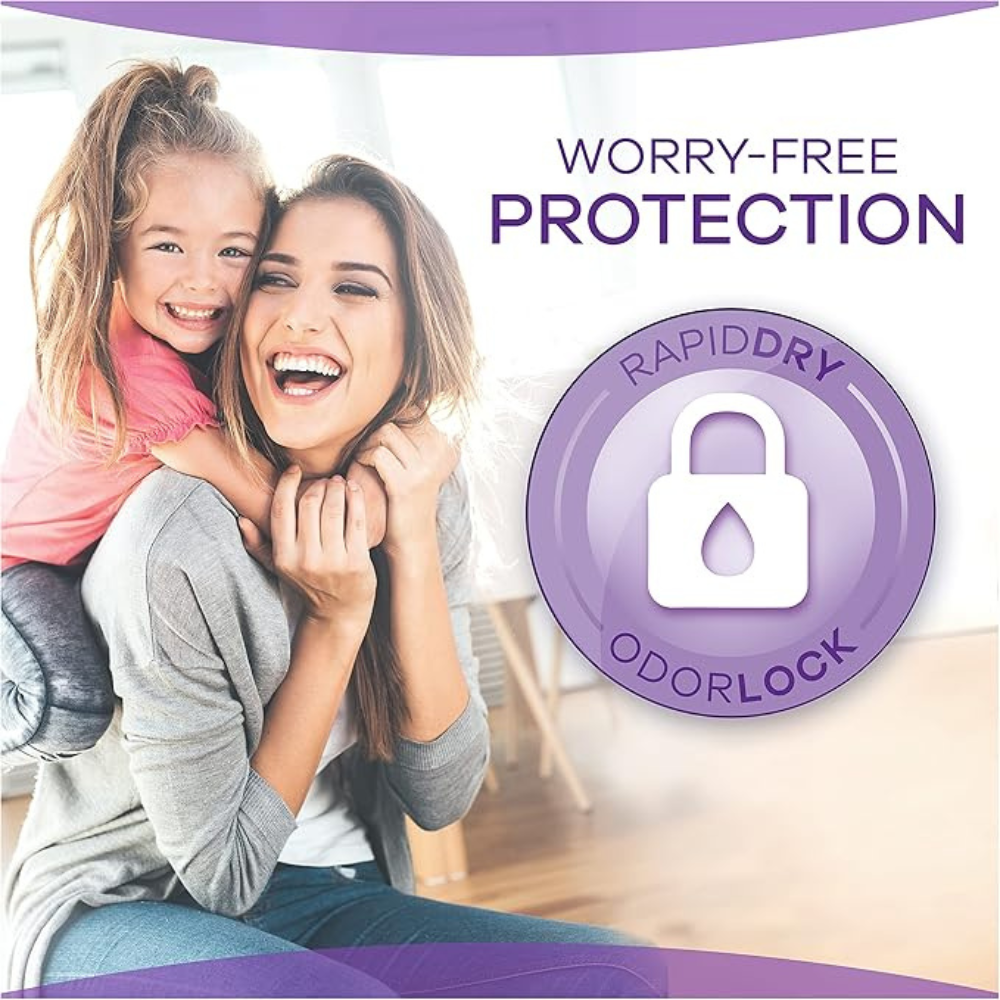 - Super absorbent core turns liquid and odour to gel, for fresh and dry protection