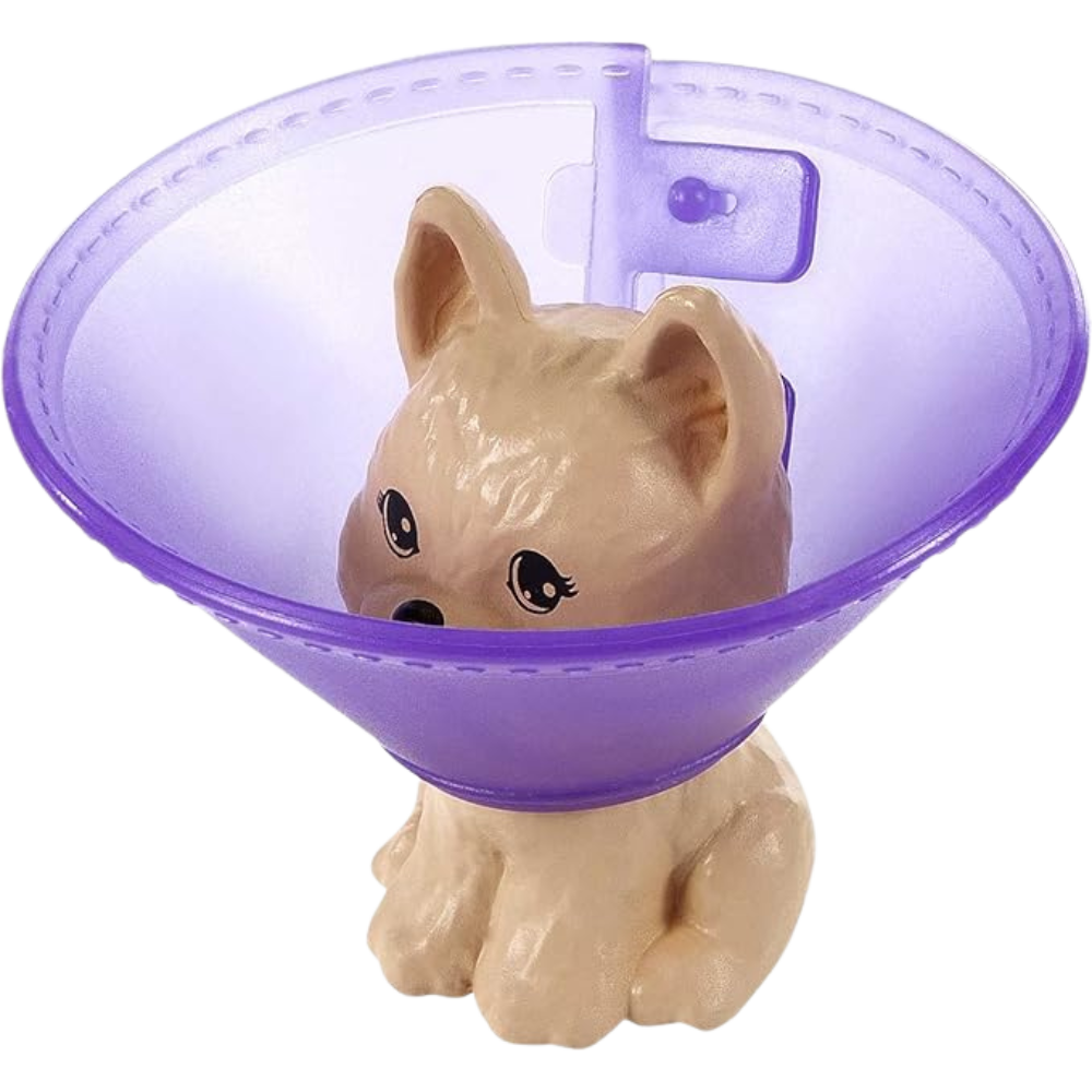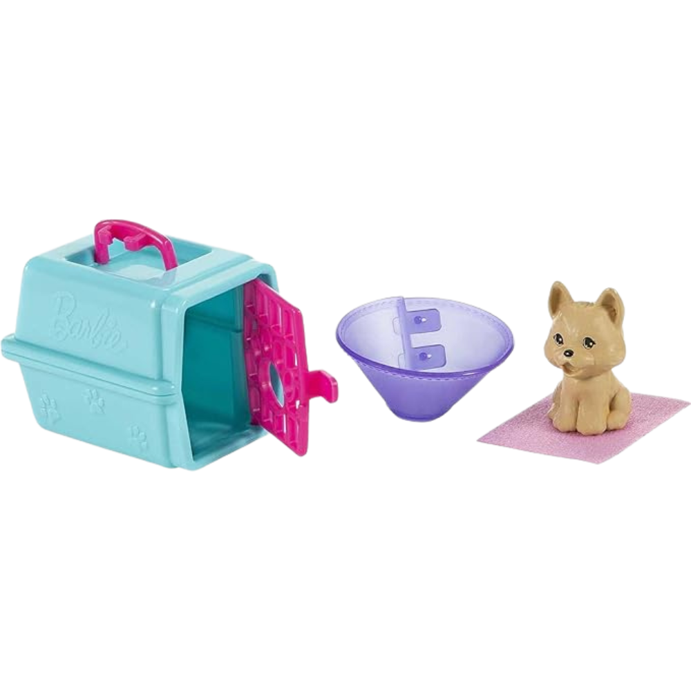 - Role-play accessories include a cone, pad and pet crate to help Barbie pet vet doll take care of her furry patient.