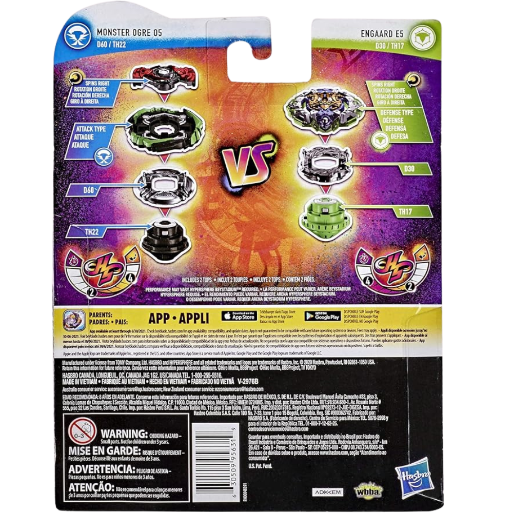 Beyblade Burst Rise Hypersphere Dual Pack Monster Ogre O5 and Engaard E5-2 Right-Spin Battling Top Toys, Ages 8 and Up