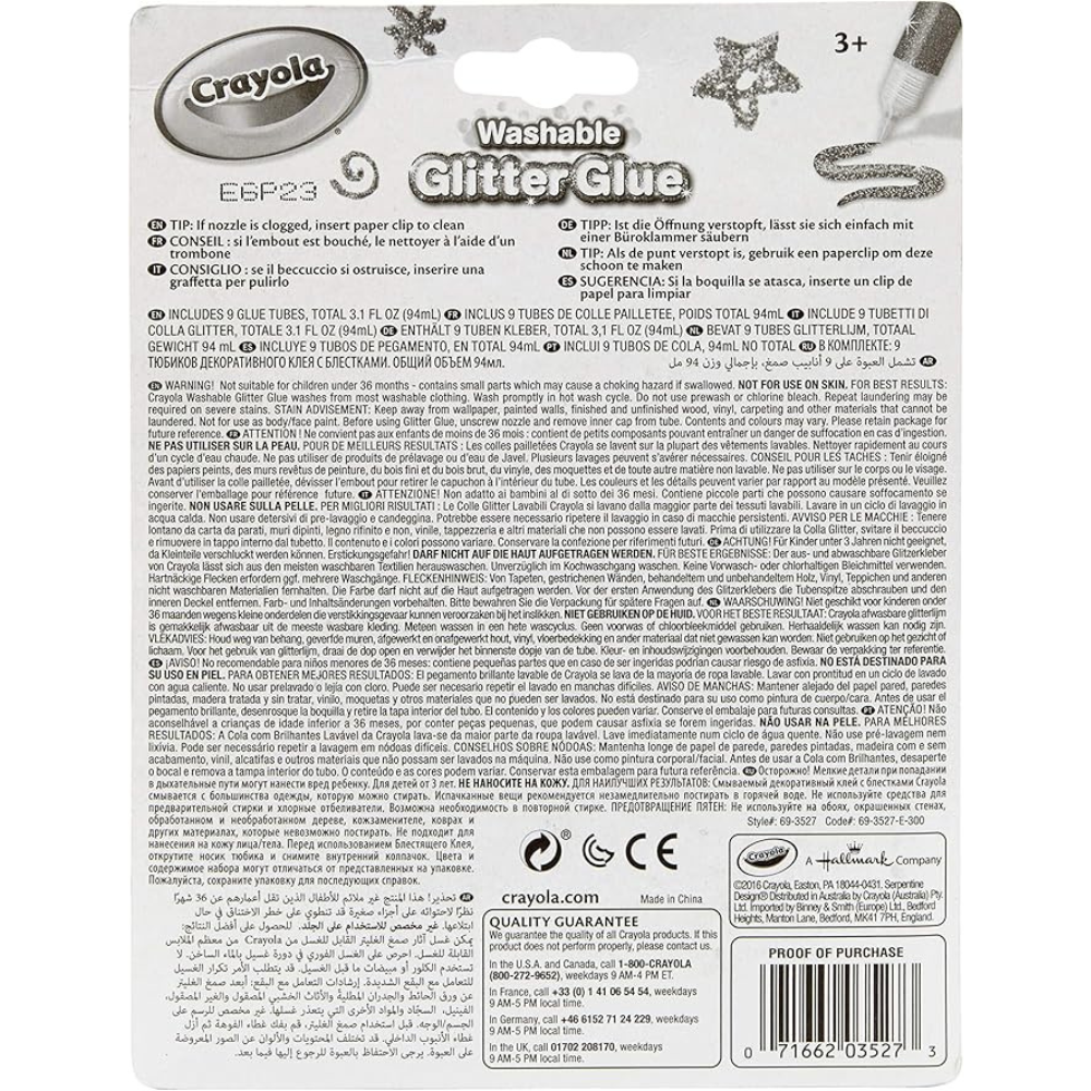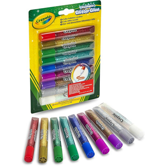 Crayola Washable Glitter Glue Pens, 9 Count, Colors may vary is backordered and will ship as soon as it is back in stock.