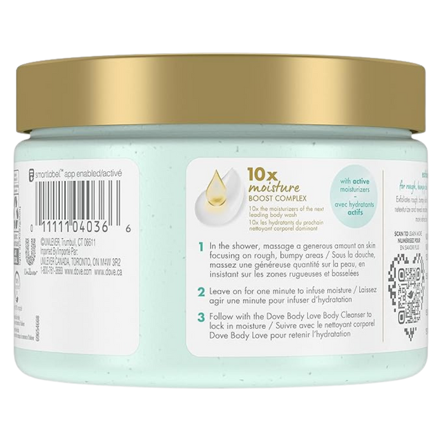 - HOW TO USE: Massage a generous amount of this body polish on skin and leave on for one minute to infuse moisture, then rinse, before following with the Dove Body Love Cleanser to lock in moisture