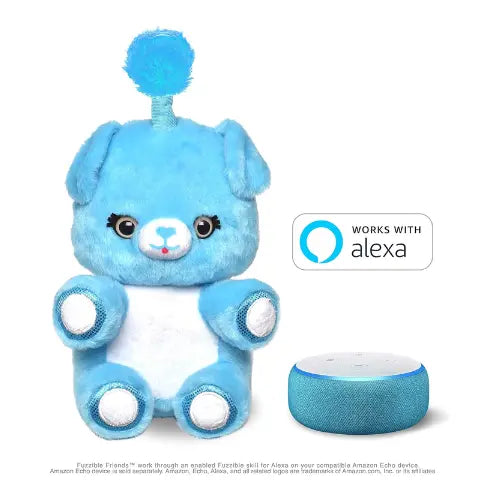 The worlds of plush and technology have collided with Fuzzible Friends ! These adorably soft, plush animals speak in a unique language. When paired with a compatible Amazon Echo device, the Fuzzible skill for Alexa magically translates their funny little language (parental consent required). Once you’ve successfully paired your cuddly Fuzzible Friend with your Echo device, just enable the Fuzzible skill and start by saying “Alexa, let’s play Fuzzible Friends ” (parental consent required). Once Alexa indicates your Fuzzible is ready to play, have your child squeeze its left paw to begin interacting and watch as its antenna lights up. When paired with your Amazon Echo device, your child can interact with their Fuzzible by playing color guessing games, choose your own story, and more! Your Fuzzible Friends plush have over 40 sounds and 140 translated phrases! Kids can also enjoy their Fuzzible Friend when it's not connected to an Echo device even though it won’t be able to give translations, every press of the left paw will still prompt your new pal to talk to you and its antenna to light up.