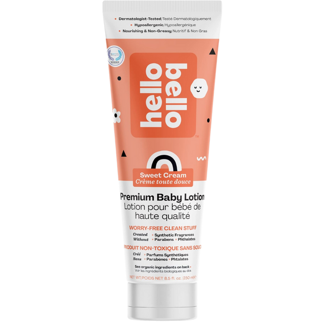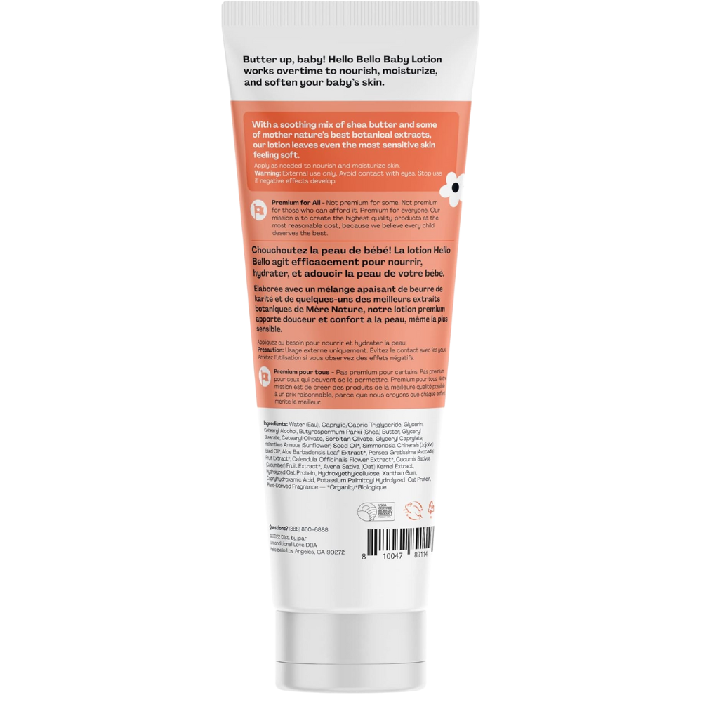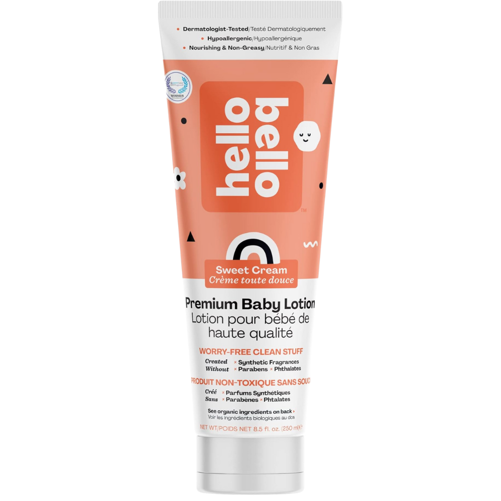 - HELLO BELLO BABY LOTION. Our moisturizing formula works overtime to nourish, soften and support the overall health of even the most sensitive skin. With a soothing mix of jojoba seed oil, shea butter and botanical extracts, your baby's skin will be feeling soft and soothed all day long.