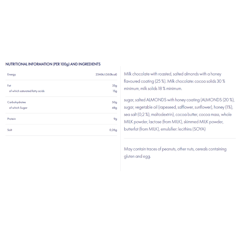 **Ritter Sport Milk Chocolate with Honey Sea-Salt Almonds** – Savor the perfect blend of creamy milk chocolate, crunchy almonds coated in honey, and a touch of sea salt. This irresistible combination offers a sweet, salty, and nutty experience in every bite, perfect for moments of indulgence!